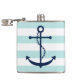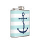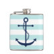 White Mint & Blue Wide Stripes Pattern Anchor Hip Flask