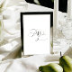 A modern classic wedding table number card designed with elegant serif typography and refined minimal style. Perfect for timeless, black-and-white wedding décor and formal receptions.