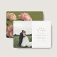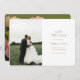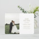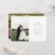 Modern and chic. This lovely wedding save the date card features a beautiful bouquet of voluptuous roses against a chic olive green background at the back, while the front is left clean with a set of contemporary fonts and couple photo.