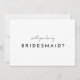 Introducing our White Modern Script Bridesmaid Proposal Card design, where modern minimalism meets the artistry of calligraphy. This curated aesthetic brings an air of sophistication to your special day- with a twist of boho, casual charm. The combination of simple typography with a stylish script font adds a unique personality to your wedding. This classic design offers a timeless, polished look that's perfect for spring, summer, fall, or winter weddings. A simple understated palette of black and white creates the perfect neutral backdrop for your celebration. Make your wedding truly elegant with our lovely Modern Script collection. As with all of our designs, if you have any questions or special requests, please just ask.