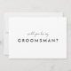 Introducing our White Modern Script Groomsman Proposal Card design, where modern minimalism meets the artistry of calligraphy. This curated aesthetic brings an air of sophistication to your special day- with a twist of boho, casual charm. The combination of simple typography with a stylish script font adds a unique personality to your wedding. This classic design offers a timeless, polished look that's perfect for spring, summer, fall, or winter weddings. A simple understated palette of black and white creates the perfect neutral backdrop for your celebration. Make your wedding truly elegant with our lovely Modern Script collection. As with all of our designs, if you have any questions or special requests, please just ask.