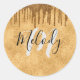 White monogram black script on dripping gold cla classic round sticker
