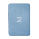 This is a medium blue background bath mat with your monogram in white at the center. This bath mat matches the Floral Pattern Blue Border Monogram shower curtain and bath towel set in our store.