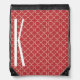 White Monogram on Retro Red Quatrefoil Pattern Drawstring Bag