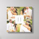 This classic multi-photo design features a white square with a gray monogram outlined with a sheer white layer. This custom canvas allows space for 4 wedding photographs from your special day.