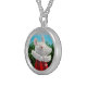 I chose gold plated so that the metal would not react with my skin oils and perspiration. But, I changed the necklace from the gold plated one to a sterling silver. My skin cells will tarnish the silver. But it will not look as bad if some portion of the gold plated necklace somehow became compromised. Zazzle did a find job turning the picture into a pendant for me. As you can see, the colors and the printing of the final product, match the preview. The picture I took is not very clear. But I am pleased with the product I received.