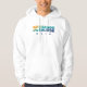 White hoodie featuring the mural by Bradford Johnson from our headquarters.