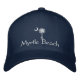 Myrtle Beach, South Carolina with a palmetto moon logo embroidered on a hat. Choose your favorite hat style and color. Customize the city name. You can also customize the thread colors of the palmetto moon and city name.