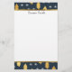 Personalized stationery with a navy blue and gold Christmas tree pattern and white space for your message. Text, font, font size, color and placement are completely customizable, so make it your own.