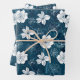 White & Navy Blue Marble Graphic Floral Pattern Wrapping Paper Sheets