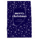 White Navy Blue Merry Christmas Snowflake Pattern Medium Gift Bag