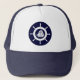 White & Navy Blue Nautical Boat Wheel Trucker Hat
