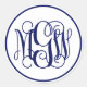 White Navy Blue Vine Script Monogram, DIY BG Classic Round Sticker