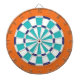 White, Navy, Turquoise, And Orange Colored Dart Board Game Including 6 Brass Darts