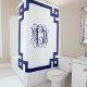 White Navy Vine Script Monogram Greek Key DIY BG Shower Curtain