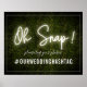 A white neon sign with the text "Oh Snap!" Background is boxwood. Text is white.