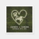 An illustration of text "Til Death" incorporated into heart shaped white neon sign design over a boxwood inspired background. Personalize the white text with names and date.