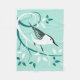 Stylized White Breasted Nuthatch art with swirl pattern branch and decorative leaf pattern on light blue background