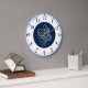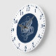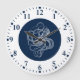 White octopus on a dark blue background and a white border. Simple and elegant design. Matching blue numerals.