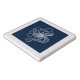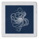 White octopus on a dark blue background and a white border. Simple and elegant design.
