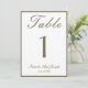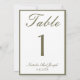 Classy and elegant old money white and olive green wedding table numbers. As you see it features a white old money background with olive green script that match the whole suite.