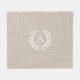 White On Beige Laurel Monogram Polka Dot Pattern Fleece Blanket