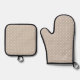 White On Beige Polka Dots Pattern With Custom Name Oven Mitt & Pot Holder Set
