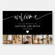 White on black script wedding welcome sign, add 5 of your favorite photos.