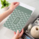 Mail in style with our Art-Deco pattern, featuring an abstract white floral Art-Deco pattern on a sage green background.
