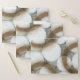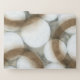 Three brown circles share a canvas with luminous white orbs in this stunning work by Jennifer Goldberger. Bright and fun, this piece would look great in your home. Order yours today!