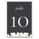 Trendy watercolor white orchids on chic black onyx background, table number card. When ordering table number cards, you must personalize each table number card individually. Designed to match our Bohemian Oasis Collection. Background color can be customized as well.
