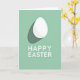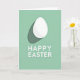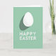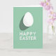 Designed with a simple spring look, this card features a single white egg shape near the top, softly shaded to feel gently rounded and calm. A long, muted green shadow trails behind it, adding depth like a quiet pause in the air. The background is a smooth mint green field that keeps the scene airy and fresh, with a small 🌷 touch that suggests the season without crowding the space. There are no characters, but the egg’s tender glow against the cool green reads like a small, shared moment between close friends. Near the bottom, two centered lines of white sans‑serif text sit neatly on the mint background, crisp and easy to read. The letters have a slight raised look that echoes the egg’s dimension, tying the layout together. The upper egg shape sits above a soft, elongated shadow in a darker, subdued green 🐇.