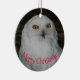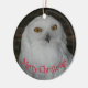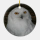 For owl collectors! Round Christmas ornament that features the photo image of a white Snowy Owl with yellow eyes along with "Merry Christmas" printed in red text. Image printed on both sides. Select your ornament style.