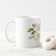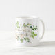 Custom coffee mugs personalized with your name monogram or other custom text. Design features a feminine watercolor white floral illustration bordering your text in a gold and white frame. Use the design tools to choose any background color, edit the text fonts and colors and add your own photos to create a one of a kind gift.