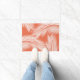 Abstract illustration with white palm leaves decoration on salmon color background for everybody who likes nature and summer themed simple design.