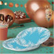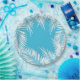 Blue background for white palm fronds that edge these paper plates - 2 sizes available - ADD wording, change the background color with our color picker tool, just click CUSTOMIZE button. See invitations and MATCHING items in our store ---> http://bit.ly/2UyWIVj <---