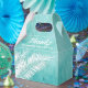 Party Favor boxes with white palm fronds on a ocean turquoise watercolor background. Perfect for any celebration, birthday party, bridal shower, engagement party, retirement party, wedding and more. Click CUSTOMIZE to change the background color, the fonts and to add wording. See invitations and MATCHING items in our store ---> http://bit.ly/2UyWIVj <---