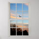 Enhance the decor of any room with this picturesque poster. The artwork creates the illusion of having a window on your wall. This realistic view of a bird flying at sunset gives the illusion of looking out of the window. The original artwork is 24" x 36" which is the average poster size and was created at high resolution (300 dpi) so it prints out beautifully.