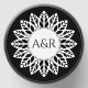 White papel picado lace flower wedding Mini Candle Favor. This soy wax candle favor showcases a refined white papel picado lace style flower design against a black backdrop, beautifully framing your initials. It enhances the sophistication of your wedding decor and acts as a meaningful thank-you gift for your guests. Customize it to create a memorable impact on those who attend.