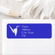 Photograph of a folded white paper crane printed on blue (customizable) background. Text left-justified and customizable.