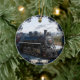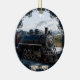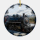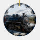 Old-fashioned train traveling through the White Pass to Skagway, British Columbia with a snow covered mountain in the background. Reprinted to make a beautiful Christmas ornament.