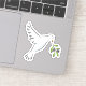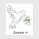 Sticker featuring a cartoon illustration of a white peace dove carrying an olive branch