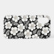 Large white flowers with pearl centers contrast beautifully against a black background, surrounded by intricate fern-like leaves