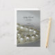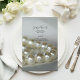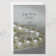 Customize the elegant White Pearls Wedding Menu with the details of the meal that you will serve at your bridal shower luncheon, post wedding brunch or marriage reception dinner by adding the salad or first course, entree or second course and dessert or third course. Personalize it with the names of the bride and groom, event venue and date. This classy custom wedding menu features a close up photograph of a white pearl necklace with a gray background.
