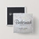 This beautiful name tag button is perfect for identifying key members of the wedding party at the bridal shower, rehearsal dinner, or wedding reception. It features modern black script lettering over a background of reflecting white peony flowers and hearts. The text is fully customizable and reads: Bridesmaid, with a place for her name, the couple's names and wedding date.