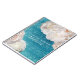 Beautiful and elegant personalized notebook design featuring white Peony flowers on a distressed turquoise damask pattern. The text is fully customizable.