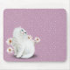 Cute white Persian cat and daisy flowers on mauve pink background and white pin dots.