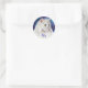 This beautiful personalised custom sticker has a fine art cat portrait by international artist Kitty Harvill. It has a white, long-haired Persian cat with green eyes, looking to the side. The background is a colorful, vibrant blue.