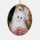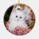 Beautiful white Persian kitten has found the basket with the Christmas presents and made herself at home cat lovers Christmas ceramic ornament