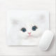 Blue eyed white persian kitten a fixed up for her photo session with false eyelashes cat lovers mouse pad